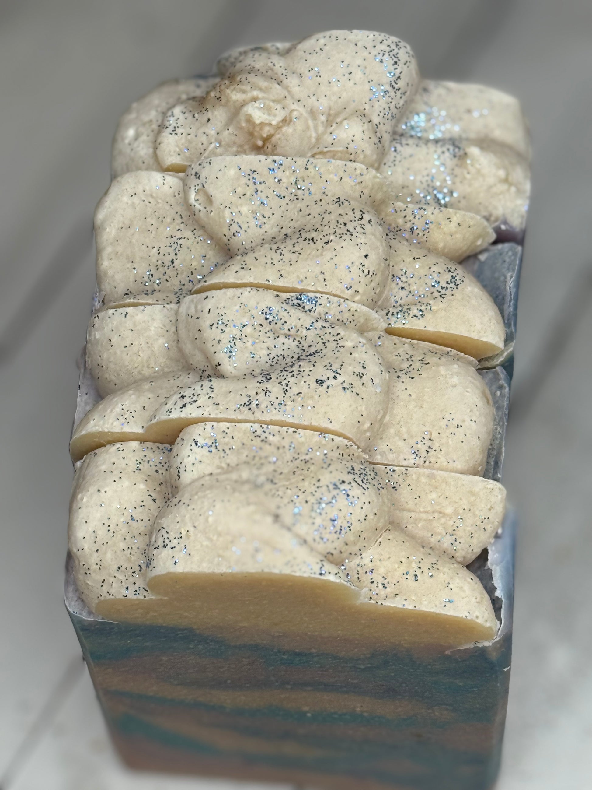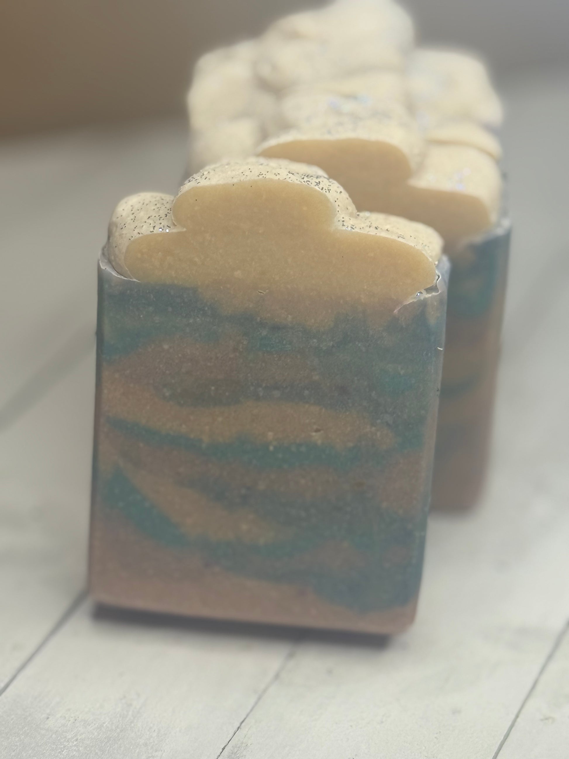 Bring a little rainy day magic to your skin! Swirls of calming blues and purples form the perfect storm, topped with a fluffy “cloud” for a playful, dreamy look. Made with nourishing goat milk, tallow, coconut oil, and shea butter, this soap gently cleanses while leaving your skin soft and refreshed.