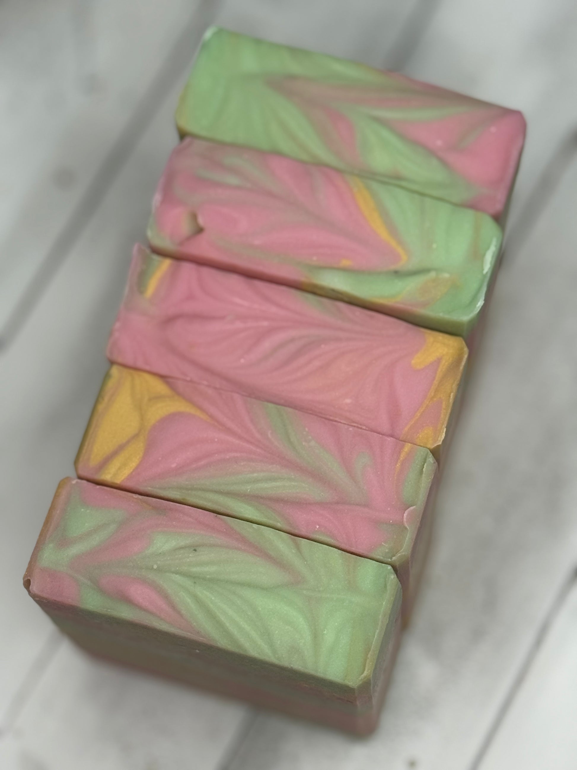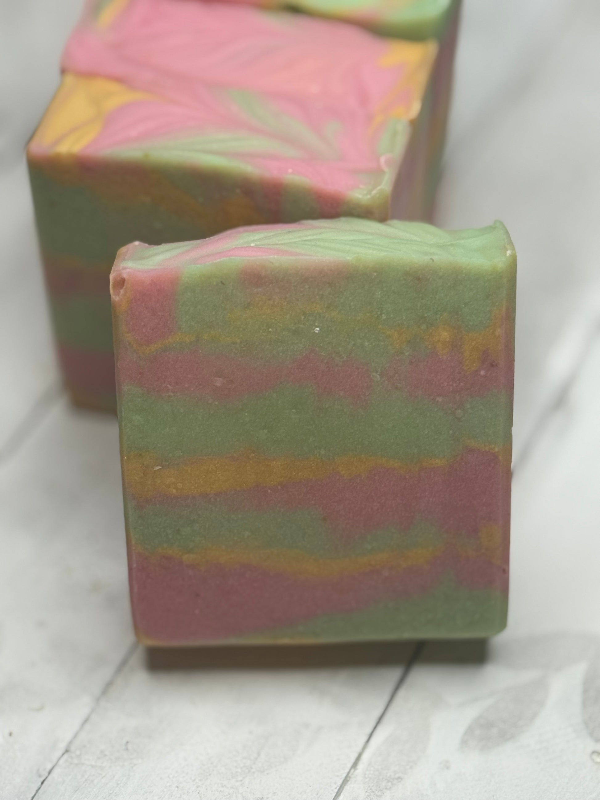 Soft pinks, dreamy turquoise swirls, and a kiss of golden shimmer—our Unicorn Kiss Goat Milk Soap is pure magic in a bar. ✨