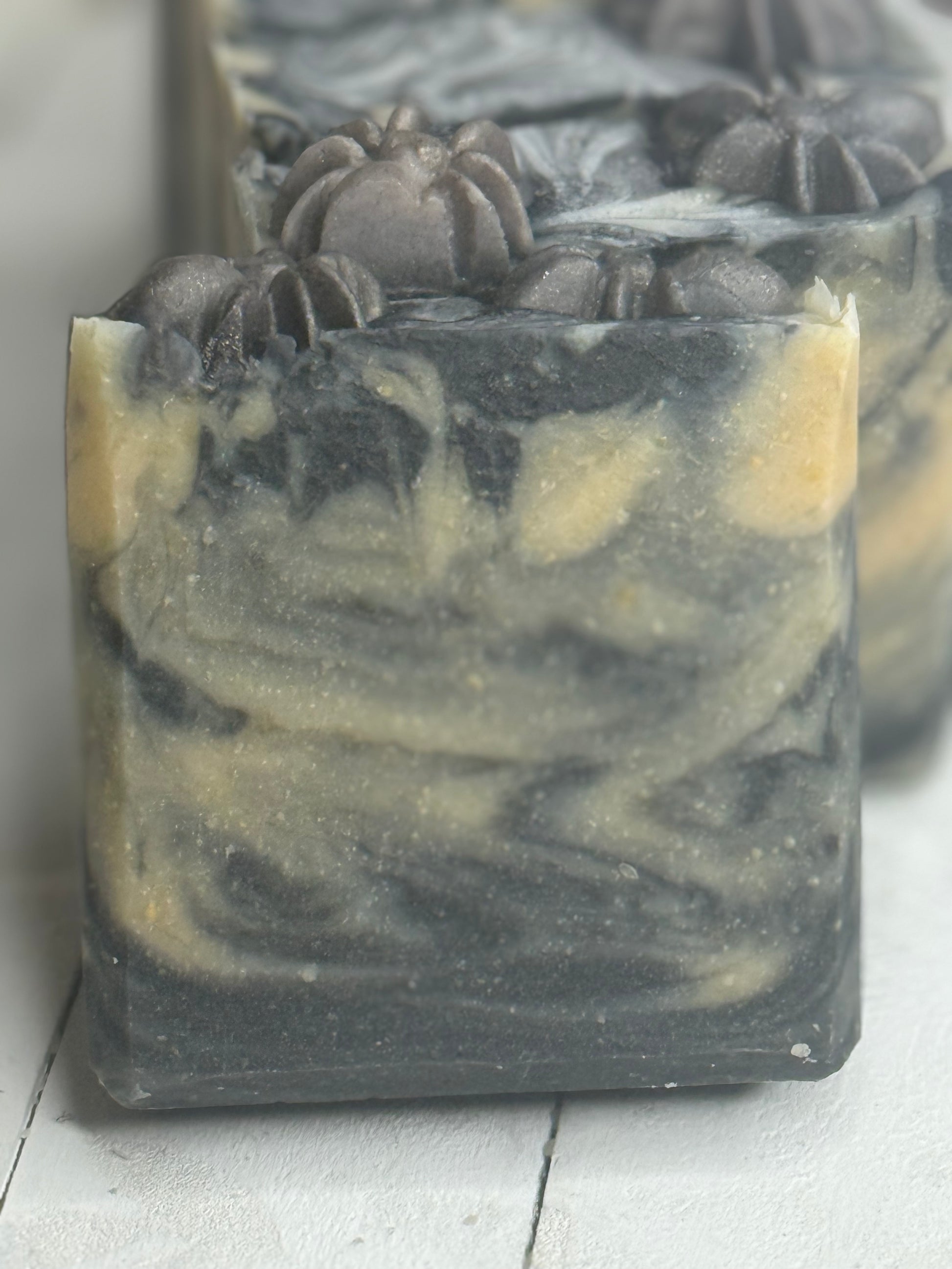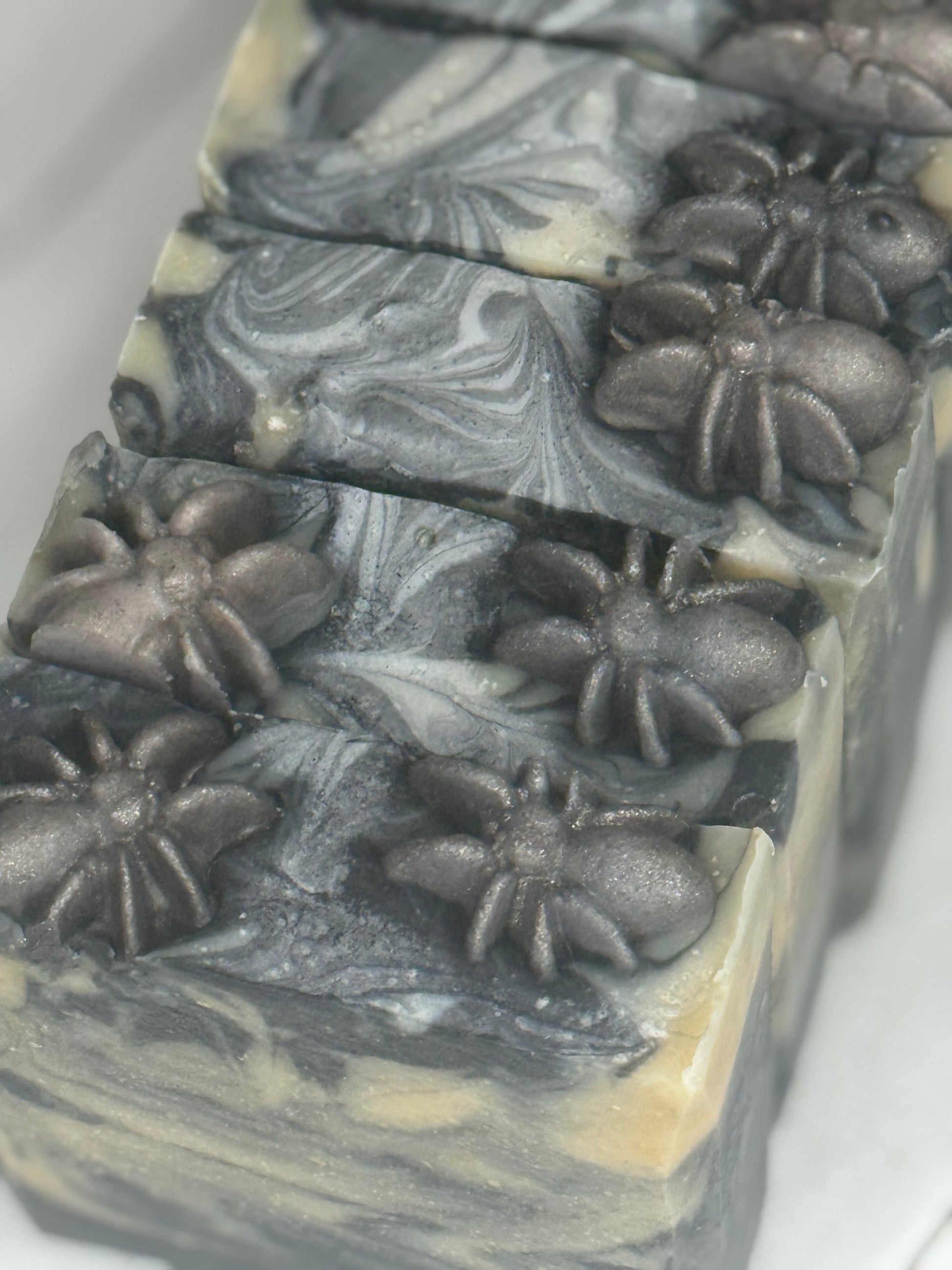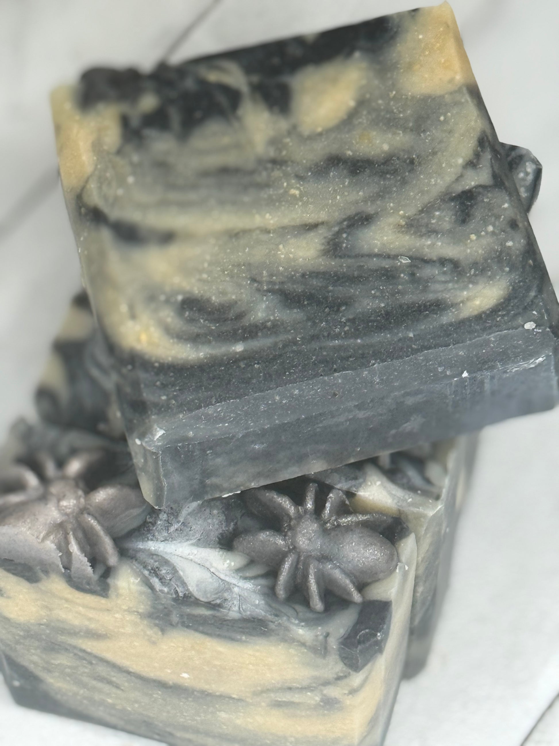Step into the shadows with this eerie bar that looks like it’s been spun straight from a ghostly spider’s web. Each soap is marbled with dark swirls and web-like details, giving it a mysterious, haunted-night vibe. Made with creamy goat milk, skin-loving tallow, shea butter, and coconut oil, this spooky treat is as gentle on your skin as it is haunting to the eye. Perfect for Halloween lovers—or anyone who enjoys a little frightful fun in their bath time ritual.